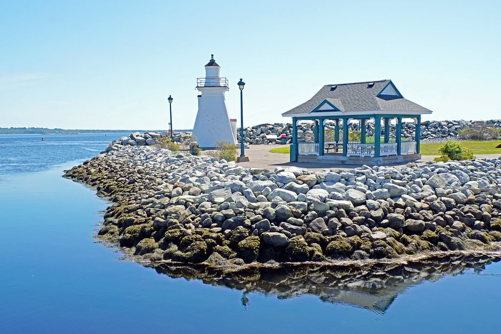 Found at the end of the breakwater in Port Medway, this unmanned lighthouse has a square wooden tower with sloping sides. The lighthouse is the site of development intended to preserve the lighthouse and improve public access and enjoyment.